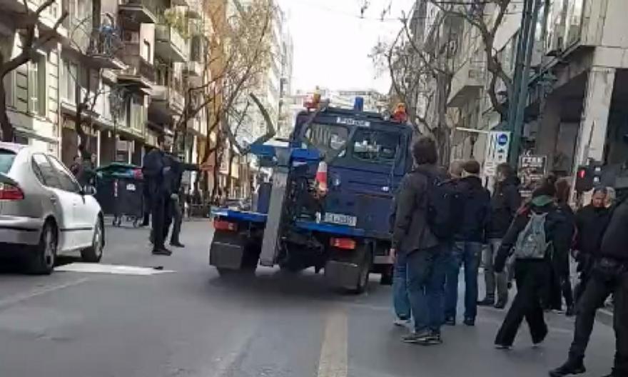 Σύμφωνα με ανώτατο αξιωματικό του υπουργείου, ο γερανός κατευθυνόταν στην Ακαδημίας προς το σημείο που είχε δεχτεί επίθεση με βαριοπούλες το όχημα της Όλγας Γεροβασίλη.