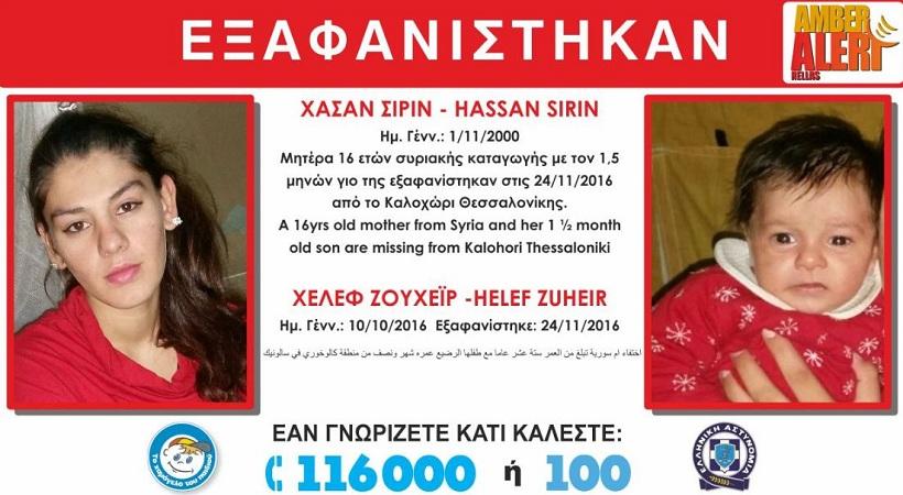 Εξαφανίστηκε χθες (24/11) μητέρα 16 ετών συριακής καταγωγής με τον 1,5 μηνών γιο της από Κέντρο Φιλοξενίας προσφύγων από το Καλοχώρι Θεσσαλονίκης.