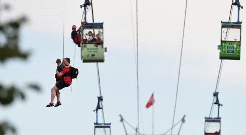 Άμεσα έσπευσαν στο σημείο περισσότεροι από 100 πυροσβέστες οι οποίοι με την χρήση γερανών ξεκίνησαν τον απεγκλωβισμό των επισκεπτών.