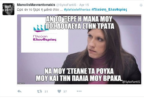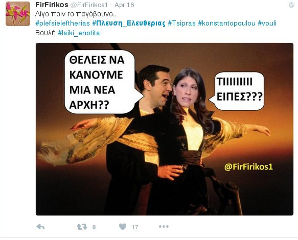 «Ανήμερα της επετείου του Τιτανικού να ονομάσεις το κόμμα σου ''Πλεύση Ελευθερίας'' το λες και αυτοτρολάρισμα» έγραψε ένας χρήστης.
