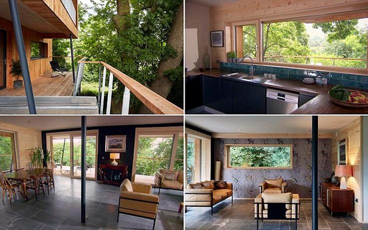 Εμπνευσμένοι όμως από ένα δεντρόσπιτο που είδαν στο Βέλγιο να ενσωματώνεται με μοναδικό τρόπο στο φυσικό περιβάλλον, υπέβαλαν αίτημα στο τοπικό συμβούλιο για πολεοδομική άδεια βάση ενός σχεδίου από το αρχιτεκτονικό γραφείο Miller Howard Workshop.