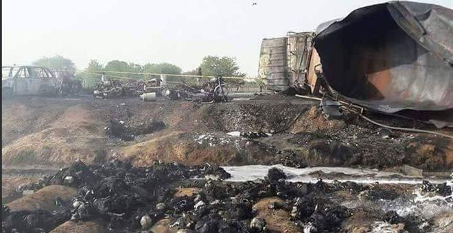 Oil tanker overturned,spilling its payload on #Bahawalpur highway 100 killed in oil tanker fire in city of Pakistan's Punjab province Multan pic.twitter.com/chaFfiKO8J