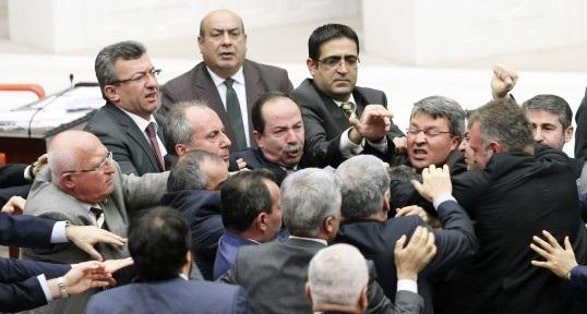 Οι βουλευτές ήρθαν στα χέρια και ένας βουλευτής του κυβερνώντος κόμματος Δικαιοσύνης και Ανάπτυξης (AKP), ο Οκτάι Σαράλ, γρονθοκόπησε τον ομιλητή.