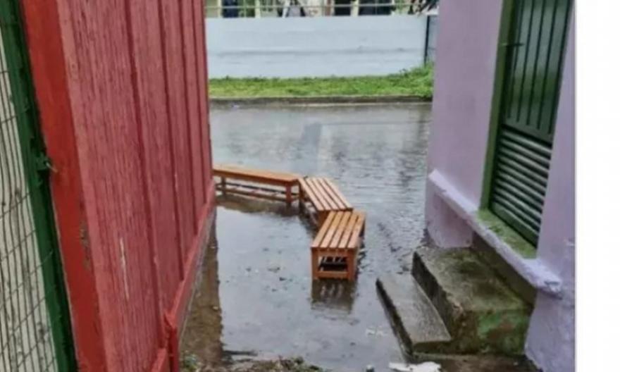 Όπως καταγράφει το Trikalanews.gr τα νερά της βροχής, κύκλωσαν το 31ο Νηπιαγωγείο Τρικάλων που μοιράζεται το ίδιο προαύλιο με το 3ο Γυμνάσιο της πόλης, με τα νήπια να μην μπορούν να βγούνε από το σχολείο για να τα παραλάβουν οι γονείς τους και να πάνε σπίτι τους με ασφάλεια και …στεγνά.