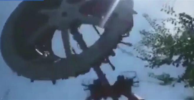Ωστόσο ο μεταλλικός βραχίονας που λειτουργούσε ως αντίβαρο στην τεράστια πλατφόρμα έσπασε στη μέση με αποτέλεσμα δεκάδες παράτολμοι αναβάτες να σκάσουν με δύναμη στο έδαφος.