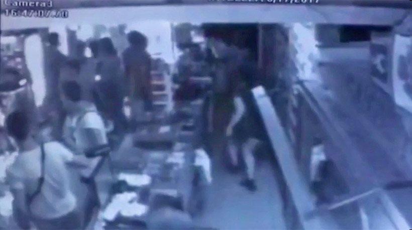 Το κατάστημα με καπνικά είδη ήταν γεμάτο από πελάτες την ώρα της επίθεσης. Στο βίντεο φαίνονται οι πελάτες να αντιλαμβάνονται ότι κάτι συμβαίνει στο δρόμο μπροστά στο κατάστημα με τους περισσότερους να τρέχουν στο πίσω μέρος του κτηρίου για να προφυλαχθούν.