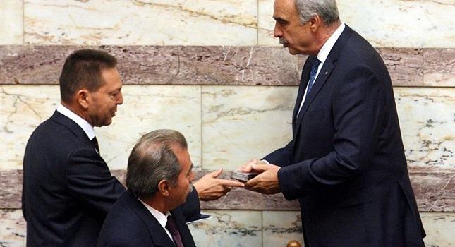 Το στικάκι με τον προϋπολογισμό του 2014 που στοχεύει σε πρωτογενές πλεόνασμα και τις συνοδευτικές εκθέσεις κατέθεσε στην Βουλή ο υπουργός Οικονομικών Γιάννης Στουρνάρας.