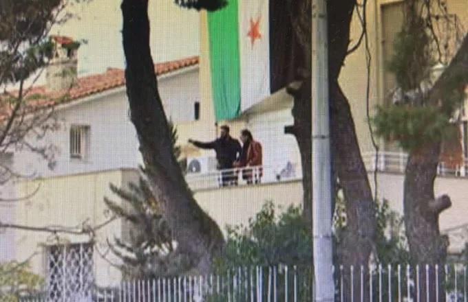 Νωρίς το πρωί της Κυριακής, Σύροι, υποστηρικτές των ανταρτών, μπήκαν μέσα στην πρεσβεία της Συρίας στο Ψυχικό και κρέμασαν τη σημαία της επανάστασης στο μπαλκόνι του κτιρίου.
