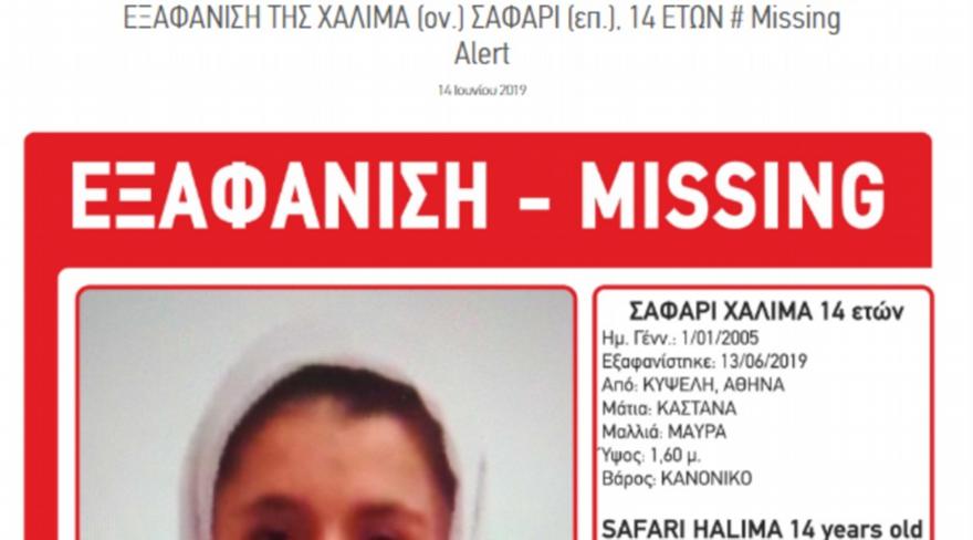 Missing Alert εξέδωσε το «Χαμόγελο του Παιδιού» για την 14χρονη Χαλιμά Σαφάρι, η οποία εξαφανίστηκε το απόγευμα της Πέμπτης από το σπίτι της στην περιοχή της Κυψέλης.