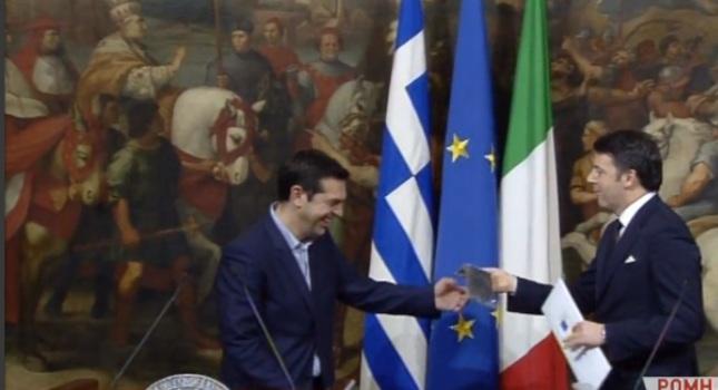 Με τη σειρά του ο Έλληνας πρωθυπουργός δώρισε στον Ματέο Ρέντσι ένα CD με τραγούδια της Κάτω Ιταλίας.