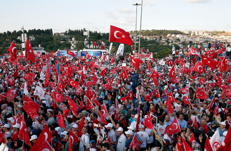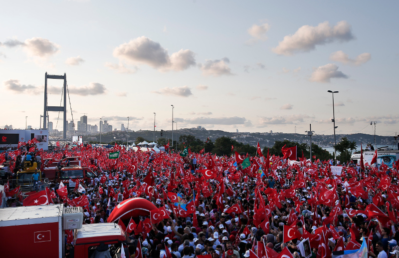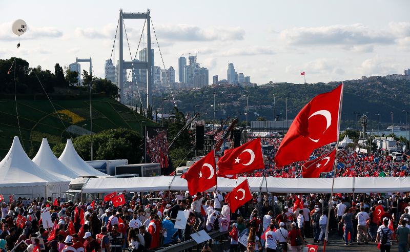 Στην Κωνσταντινούπολη, την Άγκυρα και την υπόλοιπη Τουρκία, οι πολίτες συμμετέχουν στις εκδηλώσεις για την πρώτη επέτειο από το αποτυχημένο πραξικόπημα όπου έχασαν την ζωή τους σχεδόν 250 άνθρωποι, ενώ ακολούθησε ένα πρωτοφανές στα χρονικά κύμα εκκαθαρίσεων εναντίον των φερόμενων υποστηρικτών του Φετουλάχ Γκιουλέν, του ιεροκήρυκα που κατηγορεί η Άγκυρα ως «εγκέφαλο» της απόπειρας πραξικοπήματος. Περισσότεροι από 50.000 άνθρωποι συνελήφθησαν, περισσότεροι από 100.000 απολύθηκαν.