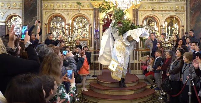 Παράδοση τείνει να γίνει ο… «ιπτάμενος» πατήρ Χριστόφορος ο οποίος για ακόμη μία χρονιά εξήλθε με τον μοναδικό του τρόπο από το ιερό του ναού της Παναγίας Ευαγγελιστρίας στη Χίο, εορτάζοντας την Πρώτη Ανάσταση του Ιησού και σκόρπισε δαφνόφυλλα στους παρευρισκόμενους πιστούς, που συμβολίζουν τη νίκη του Χριστού.
