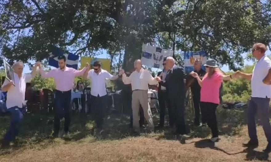 Οι νοσταλγοί της μαύρης επταετίας συγκεντρώθηκαν στο όρος Μαυροβούνι και έστησαν γλέντι με χορούς, κλαρίνα, εικόνες του Παπαδόπουλου και σημαίες με την πουλάδα.