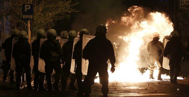 Επιθέσεις με βόμβες μολότοφ σημειώθηκαν και πάλι σήμερα τα ξημερώματα έξω από το Πολυτεχνείο, στη συμβολή των οδών Τοσίτσα και Πατησίων.