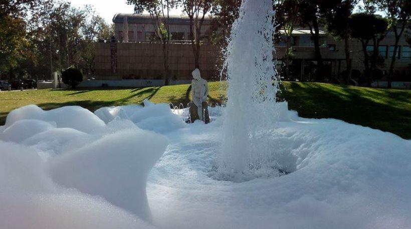 Αφρούς γέμισε το συντριβάνι στην πλατεία Λευκού Πύργου σήμερα, καθώς κάποιος άγνωστος έριξε μέσα σαμπουάν.
