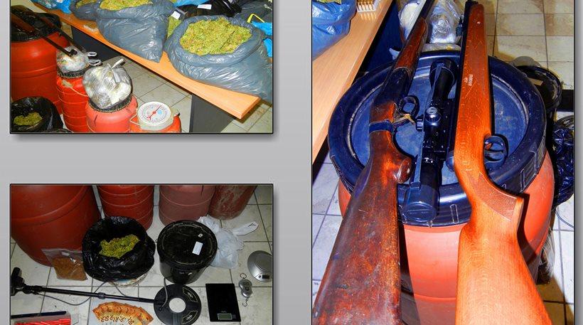 Κατά τις έρευνες που έγιναν στα σπίτια των συλληφθέντων με εκπαιδευμένο σκύλο ανιχνευτή, κατασχέθηκαν 22 κιλά και 676,1 γραμμάρια ακατέργαστης κάνναβης, μικροποσότητα κατεργασμένης κάνναβης τύπου «σοκολάτα», δέκα δενδρύλλια κάνναβης, τέσσερις ζυγαριές ακριβείας, ένα κυνηγετικό όπλο, ένα αεροβόλο όπλο με διόπτρα, ένα ξιφίδιο, ένα στιλέτο, 75 φυσίγγια διαφόρων τύπων και διαμετρημάτων, ένας ανιχνευτής μετάλλων, 45 κροτίδες, 356 γραμμάρια αδασμολόγητου καπνού, πλήθος κινητά και κάρτες σύνδεσης κινητής τηλεφωνίας και 2.480 ευρώ προερχόμενα από την διακίνηση των ναρκωτικών.
