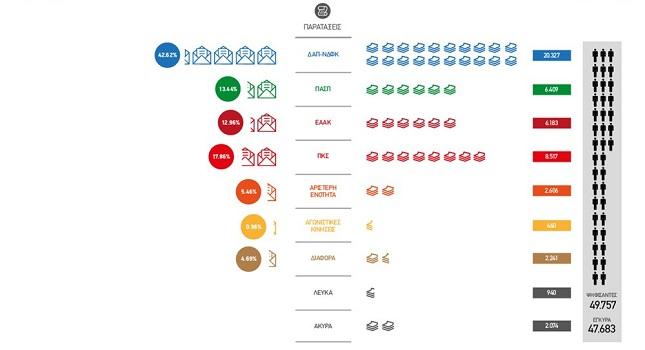 Πρώτη για μία ακόμη χρονιά αναδεικνύεται η ΔΑΠ, που πρόσκειται στη Νέα Δημοκρατία στις φετινές φοιτητικές εκλογές, η οποία σύμφωνα με τα στοιχεία αυξάνει τις δυνάμεις της.