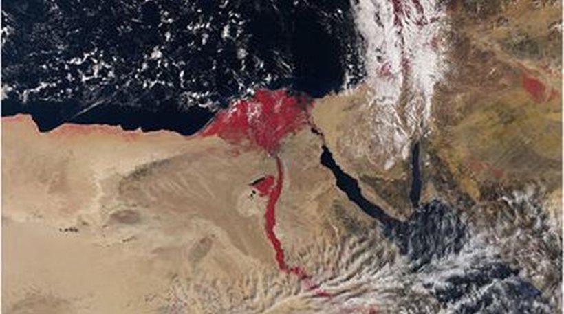 Και ναι, και όχι. Η συγκεκριμένη εικόνα είναι λήψη από τον δορυφορικό σταθμό και το κόκκινο χρώμα αποτυπώνει την περιοχή της βλάστησης, την οποία διασχίζει ο μεγάλος ποταμός.