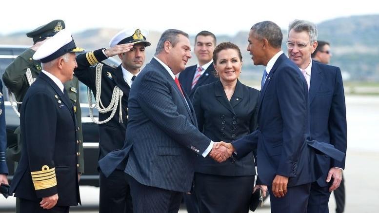 Ωστόσο στη μνήμη όλων ήρθαν οι εικόνες του περασμένου Νοεμβρίου από την ιστορική επίσκεψη του Μπαράκ Ομπάμα, όταν τον υποδέχτηκε στο αεροδρόμιο ο υπουργός Άμυνας και πρόεδρος των συγκυβερνώντων ΑΝΕΛ Πάνος Καμμένος.