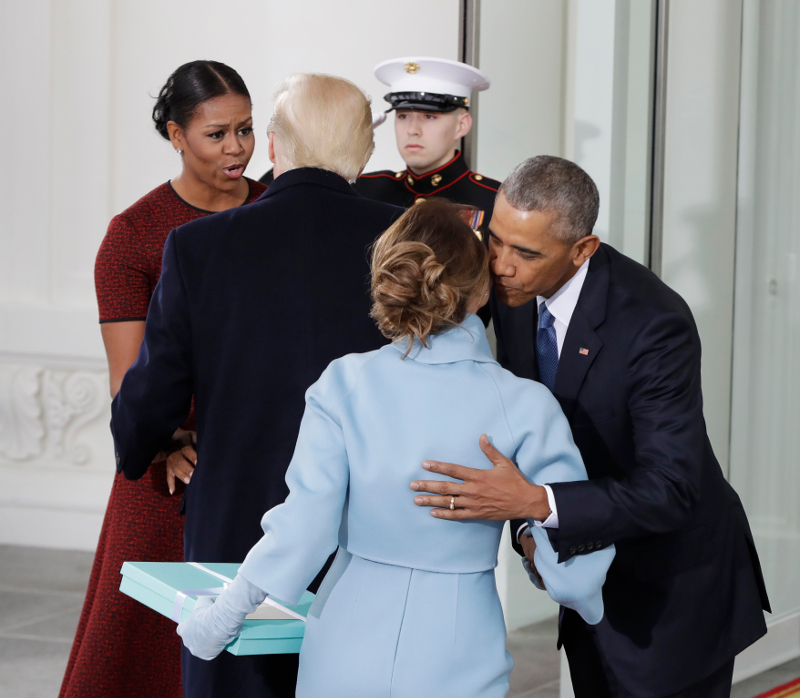 Κατά την πρώτη του άφιξη στον Λευκό Οίκο, ο Μπάρακ Ομπάμα βγήκε από το αυτοκίνητο και περίμενε τη σύζυγό του Μισέλ να περάσει πρώτη και να ανέβει τα σκαλιά για να τους υποδεχθούν ο Τζορτζ Μπους και η σύζυγος του Λόρα. Από την άλλη πλευρά, ο Ντόλαντ Τραμπ βγήκε από το αυτοκίνητο και χαιρέτησε μόνος του το ζεύγος Ομπάμα, αφήνωντας τη Μελάνια πίσω να έρχεται μόνη της.