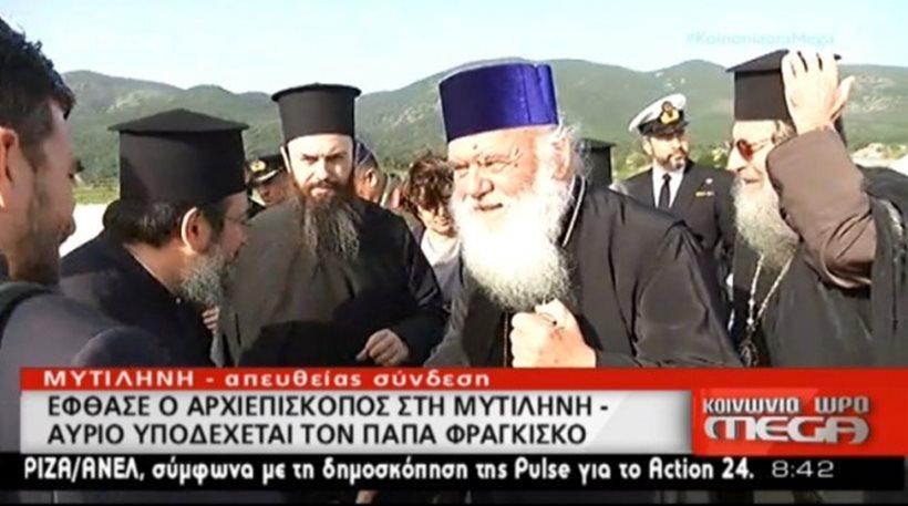 Στο αεροδρόμιο της Μυτιλήνης έφθασε νωρίς το πρωί της Παρασκευής ο Αρχιεπίσκοπος Ιερώνυμος, ο οποίος μαζί με τον Πάπα Φραγκίσκο και τον Οικουμενικό Πατριάρχη Βαρθολομαίο θα βρεθούν το Σάββατο κοντά στους πρόσφυγες, σε μια προσπάθεια να ευαισθητοποιήσουν την παγκόσμια κοινή γνώμη.