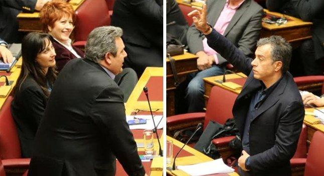 «Υπήρχε προσωπική αναφορά πρόλαβα και την άκουσα», είπε ο κ. Θεοδωράκης όταν ο κ. Καμμένος ολοκλήρωσε την ομιλία του, ζητώντας το λόγο από την πρόεδρο, Ζωή Κωνσταντοπούλου.