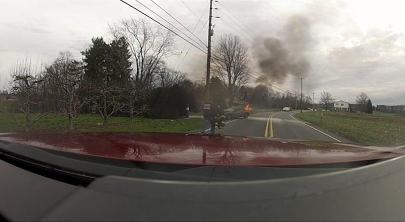 Δραματικό βίντεο διάσωσης οδηγού ΙΧ από εθελοντή πυροσβέστη στην Πενσιλβάνια των ΗΠΑ. Ο Νέιτ Τρέισι, μέλος της ομάδας «Φάιρ Κόμπανι» (Fire Company), εμφανίζεται να τρέχει προς ένα όχημα που έχει προσκρούσει σε μεταλλικό στύλο και φλέγεται.