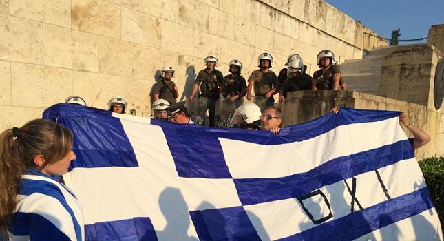 Ξεκίνησε η συγκέντρωση κόσμου στην πλατεία Συντάγματος υπέρ του «όχι» στο δημοψήφισμα. Η συγκέντρωση είχε προγραμματιστεί για τις 19:30.