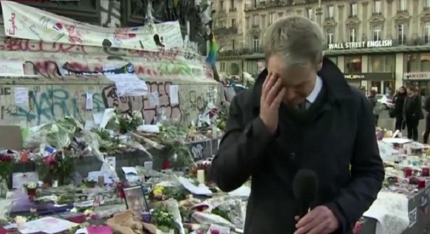 Μιλώντας από το σημείο που ο κόσμος εξακολουθεί να αφήνει λουλούδια στη μνήμη των θυμάτων των τρομοκρατικών επιθέσεων, ο ρεπόρτερ του BBC «λύγισε» στον αέρα και εμφανώς συγκινημένος διέκοψε το ρεπορτάζ του.