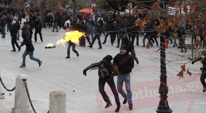 Σε πεδίο μάχης μετατράπηκε η πλατεία Συντάγματος περίπου στις 2 το μεσημέρι όταν και ξεκίνησαν επεισόδια μεταξύ αντιεξουσιαστών και ΜΑΤ. Νεαροί άρχισαν να πετούν βροχή από μολότοφ στις οποίες η αστυνομία απάντησε με εκτεταμένη χρήση χημικών.