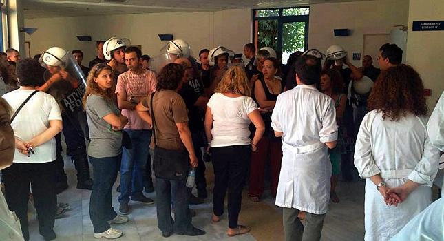 Στο επεισόδιο παρενέβησαν αστυνομικοί που υπήρχαν στον χώρο του νοσοκομείου, προκειμένου να περιφρουρήσουν την επίσκεψη του υπουργού και κατάφεραν να τον βγάλουν από τον κλοιό των διαδηλωτών.