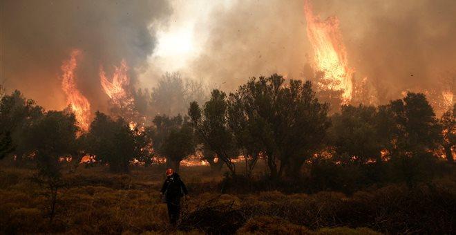 Πυκνοί καπνοί έχουν σκεπάσει την περιοχή.