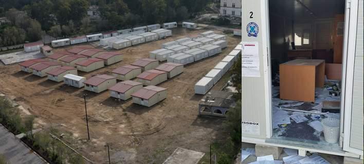 Καταστροφές στο κοντέινερ που στεγάζει τα γραφεία της πρώτης υποδοχής στο χώρο των Λεπίδων