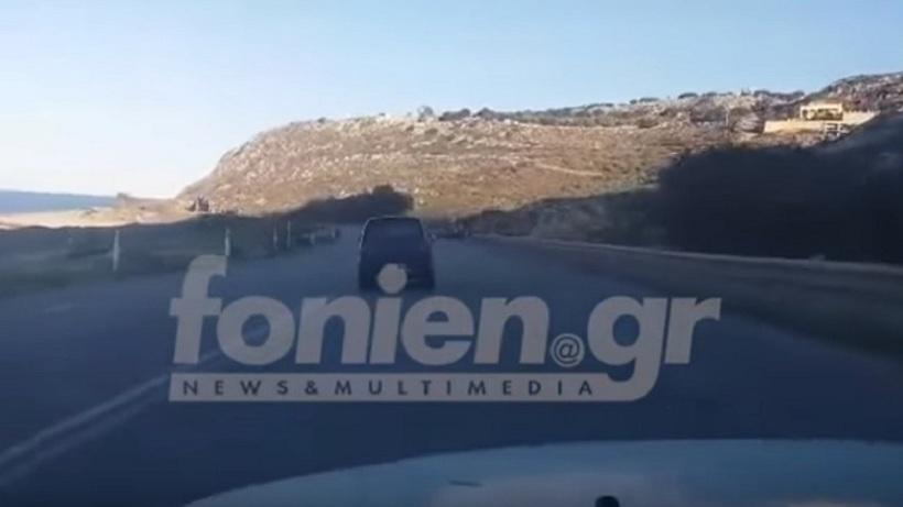 Οδηγός στην εθνική οδό Ρεθύμνου-Χανίων, πιθανότατα ήταν υπό την επήρεια αλκοόλ κάνει ζιγκ-ζαγκ και περνά στο αντίθετο ρεύμα κυκλοφορίας.