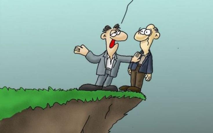 «Οι άλλοι σε έφεραν ως εδώ, ενώ εγώ μόνο μια σπρωξιά θα σου δώσω», σχολιάζει ο περίφημος σκιτσογράφος.
