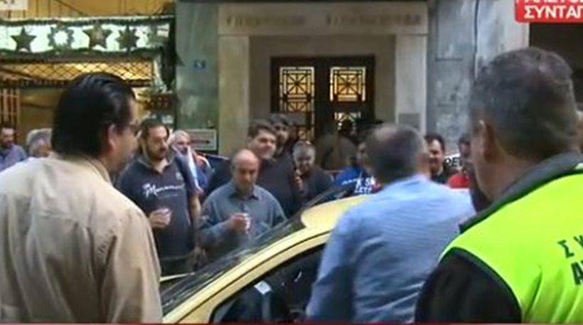 Σε συμβολικό αποκλεισμό της εισόδου του υπ. Οικονομικών στην οδό Νίκης προχώρησαν νωρίς το πρωί οι οδηγοί ταξί, που πραγματοποιούν σήμερα 24ωρη απεργία.