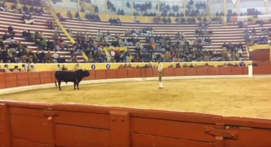 Στο βίντεο φαίνεται ο 26χρονος να προκαλεί τον ταύρο να του επιτεθεί χτυπώντας τα πόδια του στο έδαφος. Κάποια στιγμή το ζώο αντιδρά και ορμά πάνω του παρασύροντας τον για αρκετά μέτρα ενώ ο 26χρονος προσπαθεί να παραμείνει γαντζωμένος στην πλάτη του και οι σύντροφοί του να τον γλιτώσουν.