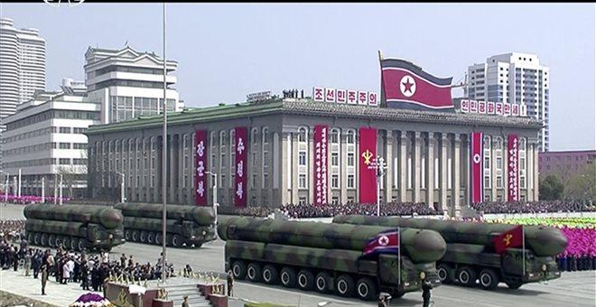 Βαλλιστικούς πυραύλους που ενδεχομένως αποτελούν το νέο μοντέλο διηπειρωτικών όπλων της επέδειξε δημόσια η Βόρεια Κορέα, κατά τη μεγάλη στρατιωτική παρέλαση στην Πιονγκγιάνγκ, στο πλαίσιο των εορτασμών για την 105η επέτειο από τη γέννηση του ιδρυτή της χώρας, Κιμ Ιλ-σουνγκ.