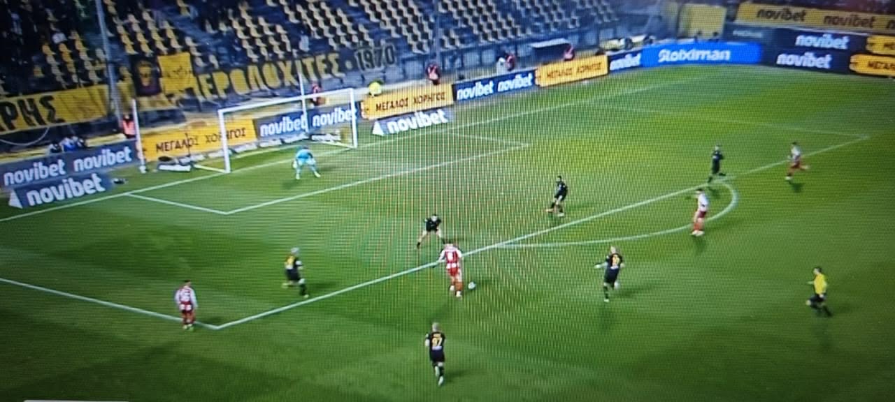 · Εδώ βλέπαμε έναν διαιτητή να παίζει συνεχώς κόντρα στη μία ομάδα, τον Ολυμπιακό, από το πρώτο (όταν κι έκλεψε κόρνερ υπέρ του Ταρέμι) έως το τελευταίο λεπτό (όταν κράτησε το ματς έως το 97’ για να εκτελέσει κόρνερ ο Άρης, ενώ είχε υποδείξει τέσσερα λεπτά καθυστέρηση)! Ένα μικρό παράδειγμα: Έσπευσε κι έδωσε στο 55’ με μεγάλη ευκολία ένα φάουλ υπέρ του Άρη κοντά στην περιοχή του Τζολάκη, ενώ στο 74’ δεν έδωσε τίποτα όταν ένας παίκτης του Άρη, ένα μέτρο έξω από την περιοχή του Αθανασιάδη, γκρέμισε σε εναέρια διεκδίκηση τον Πιρόλα, με κτύπημα στα πλευρά του Ιταλού. Η δε θέση για φάουλ ήταν ό,τι έπρεπε για μία απευθείας εκτέλεση.