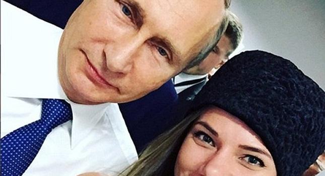 Στην πρώτη φωτογραφία ο Ρώσος πρόεδρος ποζάρει με την φιναλίστ των καλλιστείων για την Μις Ρωσία Βιολέτα Ιγκοσίνα, ενώ στη δεύτερη προστίθεται στο ντουέτο ακόμα ένα μοντέλο που εργάστηκε για την εκδήλωση.