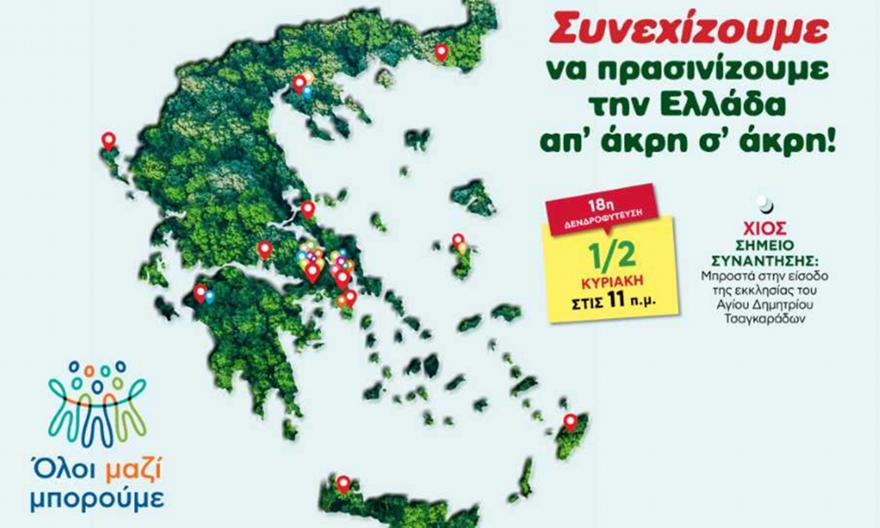 Η 18η δενδροφύτευση της σεζόν, αυτή την Κυριακή 1 Φεβρουαρίου, στη Χίο.