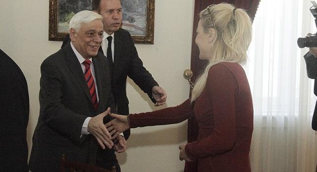 Όπως για παράδειγμα η Δήμητρα Ματσούκα, η γνωστή ηθοποιός που σήμερα βρέθηκε στο Προεδρικό Μέγαρο, συζήτησε με τον Προκόπη Παυλόπουλο και φωτογραφήθηκε τόσο μαζί με τον Πρόεδρο της Δημοκρατίας όσο και μόνη. Η Δήμητρα Ματσούκα για την περίσταση, η οποία ήταν η συνάντηση του ΠτΔ με ανθρώπους του καλλιτεχνικού χώρου για την επαναφορά του ειδικού φόρου στα κινηματογραφικά εισιτήρια, επέλεξε ένα εφαρμοστό ζακετάκι, το οποίο -όπως σχολίασαν κάποιοι παριστάμενοι- είχε περισσότερα κουμπιά ξεκούμπωτα από όσα άρμοζε...