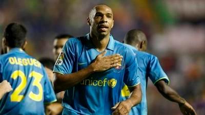 Ο Τιερί Ανρί πέτυχε τρία γκολ και οδήγησε την Μπαρτσελόνα στην πρώτη εκτός έδρας νίκη της στο πρωτάθλημα με το ευρύ 4-1 επί της Λεβάντε, αποτέλεσμα που φέρνει τους Καταλανούς στην κορυφή της βαθμολογίας με 14 βαθμούς.
