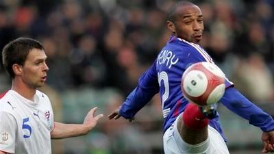 Η Γαλλία συνέτριψε με 5-0 τα Νησιά Φερόε στο Τόρσαβν για τον δεύτερο προκριματικό όμιλο του EURO 2008 επιστρέφοντας στις επιτυχίες μετά την εκτός έδρας ισοπαλία απέναντι στην Ιταλία και την εντός έδρας ήττα από τη Σκωτία το Σεπτέμβριο. Ο Νικολάς Ανελκά με γκολ στο 6’ άνοιξε το σκορ και έδιωξε το άγχος από τους συμπαίκτες του, ενώ δύο λεπτά μετά ο Τιερί Ανρί διπλασίασε τα τέρματα των «τρικολόρ» φτάνοντας παράλληλα ο ίδιος τα 41 με το εθνόσημο στην 95η συμμετοχή του και ισοφαρίζοντας τον ρέκορντμαν Μισέλ Πλατινί. Στην επανάληψη ο Καρίμ Μπενζεμά σκόραρε δύο φορές (50’ και 81’) και οι Ζερόμ Ροτέν (με απευθείας εκτέλεση φάουλ 66’) και Χατέμ Μπεν Αρφά (93’) από μία διαμορφώνοντας το τελικό 6-0. Αξίζει να σημειωθεί πως η αποστολή της Γαλλίας έφτασε στον προορισμό της λίγες ώρες πριν τον αγώνα και με μία ημέρα καθυστέρηση λόγω ομίχλης που καθιστούσε αδύνατη την πτήση. Η Γαλλία με δύο νίκες στους τελευταίους δύο αγώνες της στα προκριματικά, εντός έδρας απέναντι στη Λιθουανία (17/10) και εκτός έδρας απέναντι στην Ουκρανία (21/11), προκρίνεται ανεξάρτητα από τα αποτελέσματα που θα έχουν Σκωτία και Ιταλία.