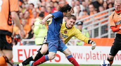 Μετά το 6-0 επί της Χιμπέρνιαν, η Μπαρτσελόνα συνέτριψε και τη Νταντί Γιουνάιτεντ, αυτή τη φορά με 5-1, στο δεύτερο φιλικό της στη Σκωτία. Οι γηπεδούχοι έκαναν το... λάθος να προηγηθούν στο 25’ με τον Μπάουμπεν, αλλά στο αμέσως επόμενο λεπτό ο Τιερί Ανρί με διπλή προσπάθεια ισοφάρισε. Στην επανάληψη ανέλαβε δράση ο Λιονέλ Μέσι, ο οποίος περνώντας ως αλλαγή πέτυχε χατ-τρικ σκοράροντας στο 51’, το 75’ και το 78’, ενώ ο Σαμουέλ Ετό στο 60’ είχε σκοράρει επίσης.