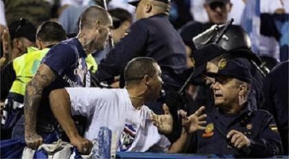 Σε απόσταση τουλάχιστον 300 χιλιομέτρων μακριά από το «Βιθέντε Καλντερόν» θα υποχρεωθεί να δώσει τους τρεις προσεχείς ευρωπαϊκούς αγώνες της η Ατλέτικο Μαδρίτης, όπως αναφέρουν τα ισπανικά ΜΜΕ. Αυτή αναμένεται να είναι η ποινή που θα επιβληθεί στους «ροχιμπλάνκος» για τα επεισόδια που προηγήθηκαν της αναμέτρησης με τη Μαρσέιγ για τη δεύτερη αγωνιστική του Champions League. Όπως μεταδίδεται, οι διοικούντες του ισπανικού συλλόγου θεωρούν άδικη την τιμωρία, καθώς τα επεισόδια προκλήθηκαν κυρίως από τους φανατικούς εκδρομείς οπαδούς της γαλλικής ομάδας, με συνέπεια να υπάρξει δυναμική επέμβαση της αστυνομίας και να γίνουν συλλήψεις. Μάλιστα ένας οπαδός της Μαρσέιγ παραμένει υπό κράτηση και απειλείται με φυλάκιση από έξι μήνες έως τρία χρόνια.