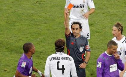Σε κακή συνήθεια εξελίσσονται για τον Σέρχιο Ράμος οι αποβολές. Ο διεθνής δεξιός μπακ της Ρεάλ Μαδρίτης αντίκρισε την κόκκινη κάρτα στο 44ο λεπτό της αναμέτρησης με τη Μάλαγα (4-3) επειδή πάτησε αντίπαλο. Αυτή ήταν η όγδοη αποβολή στην τετραετή θητεία του στη «βασίλισσα», επίδοση που τον καθιστά τον δεύτερο πιο… άτακτο παίκτη στην ιστορία του συλλόγου. Τα πρωτεία έχει ο Φερνάντο Ιέρο, ο οποίος είχε αποβληθεί 10 φορές, αλλά σε διάστημα 14 ετών. Ακολουθούν ο Ούγκο Σάντσες με 7 αποβολές σε ισάριθμα χρόνια καριέρας στη Ρεάλ και ο Γκούτι με επίσης 7 αποβολές σε 14 χρόνια καριέρας στο «Σαντιάγκο Μπερναμπέου».