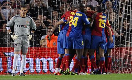 Μόλις στο 3ο λεπτό ο Ινιέστα με εξαιρετικό πλασέ εκτός περιοχής «κρέμασε» τον άπειρο Βάρας που πήρε τη θέση του τιμωρημένου Πάλοπ κάτω από τα δοκάρια των φιλοξενουμένων. Στο 17’ ήρθε το 2-0, όταν Τσάβι και Ινιέστα άλλαξαν την μπάλα και ο τελευταίος σέρβιρε στον Ετό, που πλάσαρε σε κενή εστία φτάνοντας τα 27 τέρματα στο πρωτάθλημα. Στο 49’ ήταν η σειρά του Τσάβι να βρει δίχτυα με όμορφο σουτ και πέντε λεπτά μετά από νέα ασίστ του Ινιέστα ο Ανρί έγραψε το 4-0. Κι όλα αυτά με τον Μέσι στον πάγκο, να προφυλάσσεται και να παίρνει ανάσες εν όψει της δύσκολης συνέχειας. Αν υπάρχουν δύσκολα για αυτή τη διαστημική Μπαρτσελόνα...