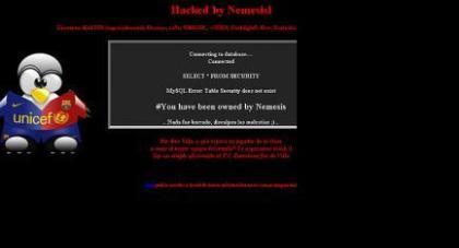 Ένας χάκερ-οπαδός της Μπαρτσελόνα έκανε άνω-κάτω την προσωπική ιστοσελίδα του Νταβίντ Βίγια (davidvilla7.com) για λίγες ώρες. Με την υπογραφή «Νέμεσις» και σήμα έναν πινγκουίνο με τη φανέλα της «Μπάρτσα», ο αγνώστων στοιχείων φίλος του καταλανικού συλλόγου θέλησε να απευθύνει ένα μήνυμα στον άσο της Βαλένθια.