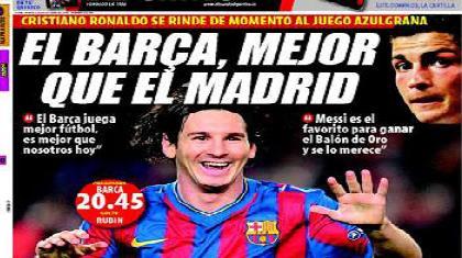 Ένας άλλος λόγος για τον οποίο μπορεί να υπερηφανεύονται οι Καταλανοί στους «αιωνίους» είναι η παραδοχή του Ρονάλντο ότι ο Μέσι είναι το μεγάλο φαβορί για τη «Χρυσή Μπάλα» και πως θα αξίζει αυτό το βραβείο. «Για να πάρεις το βραβείο του καλύτερου παίκτη στον κόσμο πρέπει να έχεις κατακτήσει τίτλους. Το φαβορί είναι κάποιος παίκτης της Μπαρτσελόνα. Θα μπορούσε να ήταν ο Τσάβι, ο Ετό αλλά νομίζω ότι ξεκάθαρο φαβορί είναι ο Μέσι. Κέρδισε το Τσάμπιονς Λιγκ, το πρωτάθλημα και αν πάρει τελικά το βραβείο, σίγουρα θα το αξίζει»!